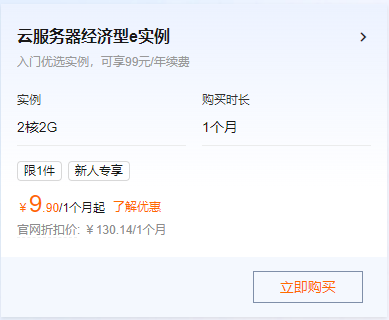 值得一提的阿里云计算是,2核2G云服务器经济型e实例,云大验云元购买1个月只要9.9元,促新如果后期继续使用 ,人体续费可以享受99元1年。服务